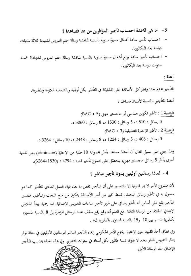 وتضمن البلاغ الصادر عن وزارة التعليم العالي كيفية احتساب تأجير تأطير أعمال ختم الدراسات :