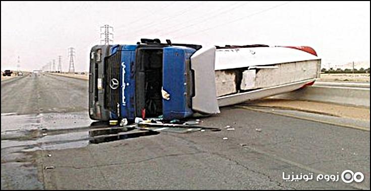 وقد توقفت حركة المرور بادئ الامر قبل توقفها بصفة مؤقتة مساءا وذلك لتمكين الرافعة من ازاحة الشاحنة عن الطريق، وذلك وفق مصدر أمني لإذاعة الديوان.