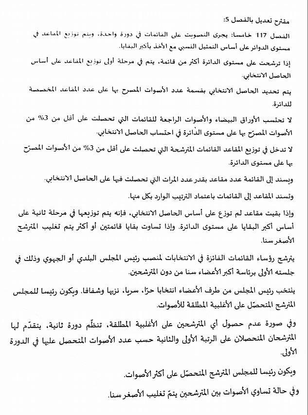 واعتبر البعض أن رفض هذه الأحزاب التصويت على هذا الفصل المتعلق بالانتخابات البلدية وكيفية احتساب الأصوات وتوزيع المقاعد هو محاولة صريحة من الأحزاب الثلاثة المذكورة تعطيل الانتخابات البلدية عوض التسريع فيها، وهم من كانوا يتهمون حركة النهضة بالتعطيل.