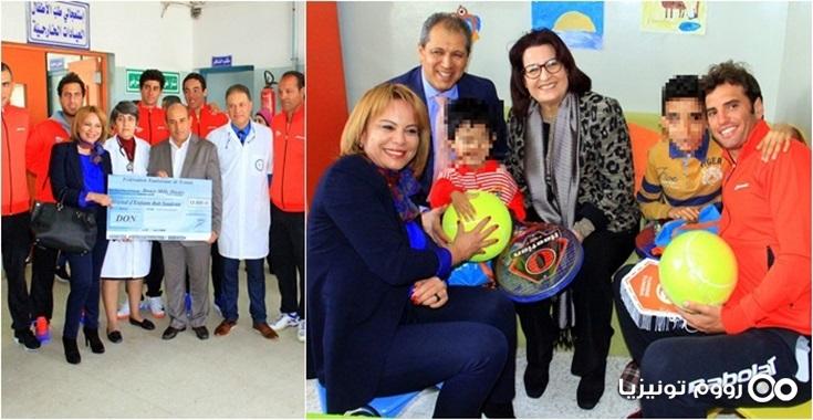 وتولت الجامعة الوطنية للتنس بالإضافة إلى تقديم الهدايا التبرع بمبلغ 12 ألف دينار لفائدة مستشفى الأطفال البشير حمزة.