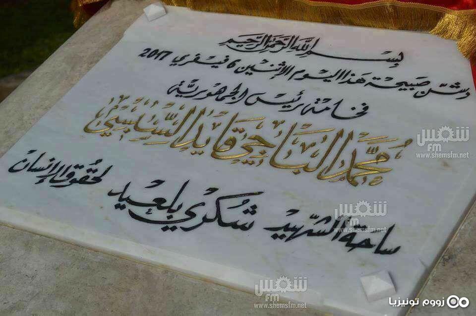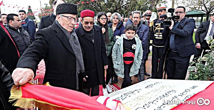 وبعد استعراض تشكيلة شرفية من الجيش الوطني أدت له التحيّة، وضع رئيس الدولة إكليلا من الزهور وقرأ فاتحة الكتاب ترحما على روح الشهيد، قبل تحيّة العلم وإزاحة الستارة على اللوحة التذكارية للساحة.