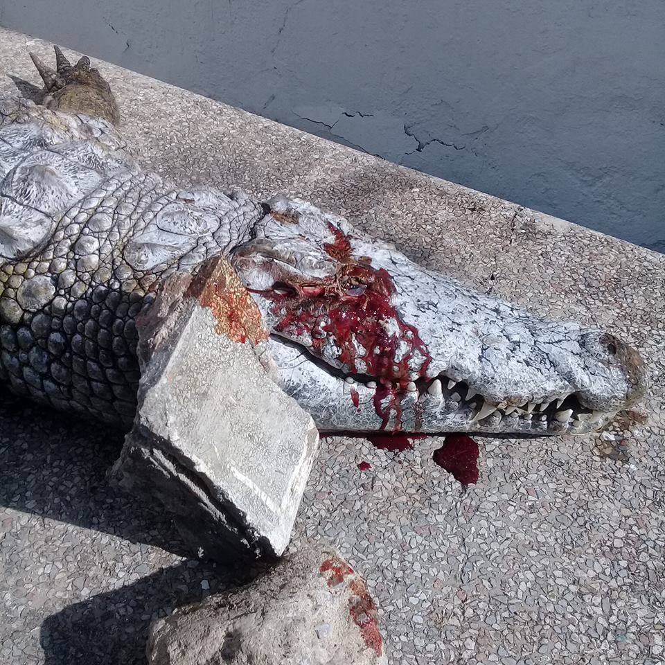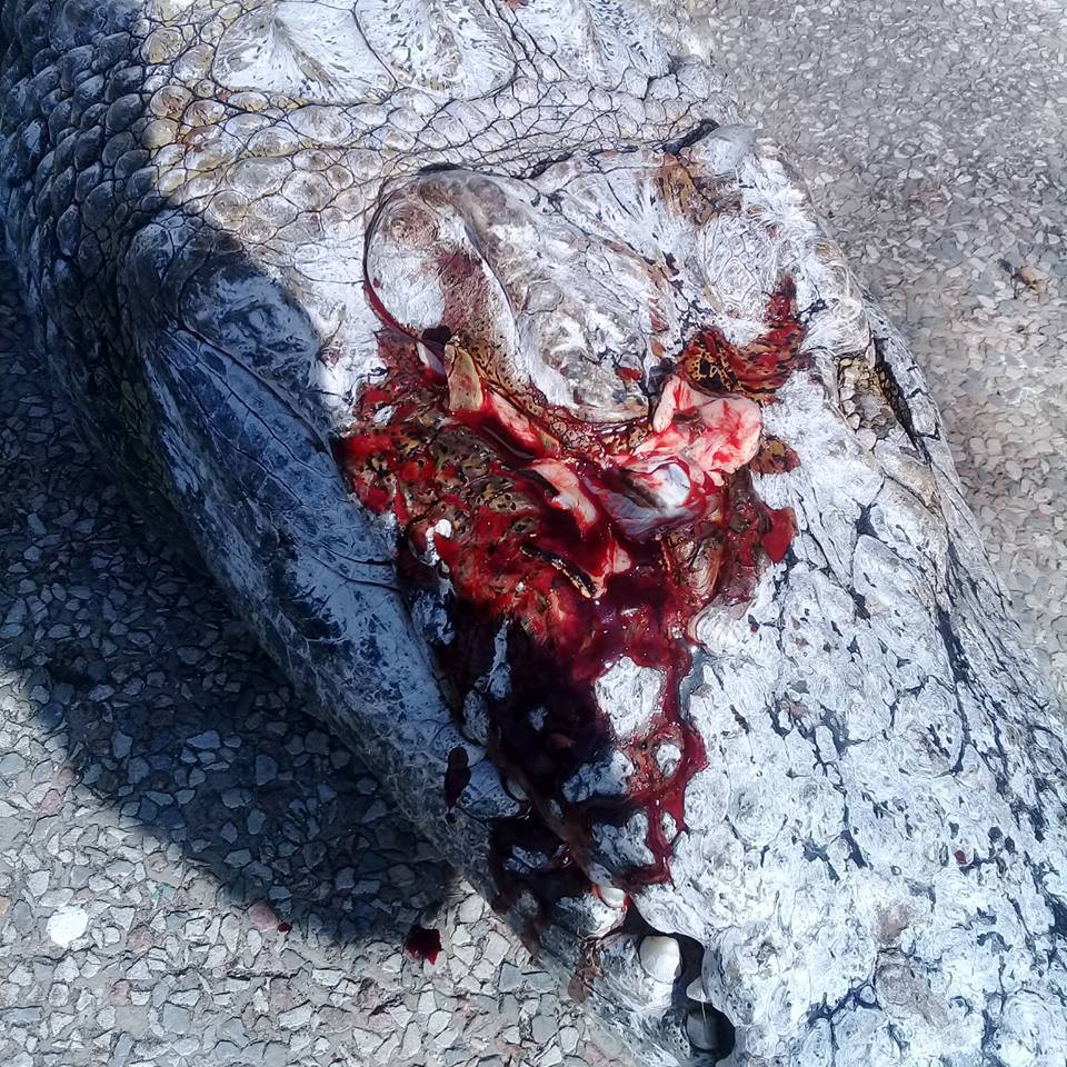 وقد تسبب هذا السلوك الهمجي في نزيف دموي للتمساح مما أدى إلى وفاته.