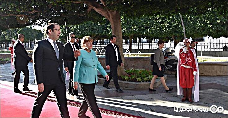 وتُجرى الآن محادثة ثنائية بين رئيس الحكومة يوسف الشاهد والمستشارة الألمانية انجلا ميركل وبحضور وفدي البلدين بقصر الحكومة بالقصبة.