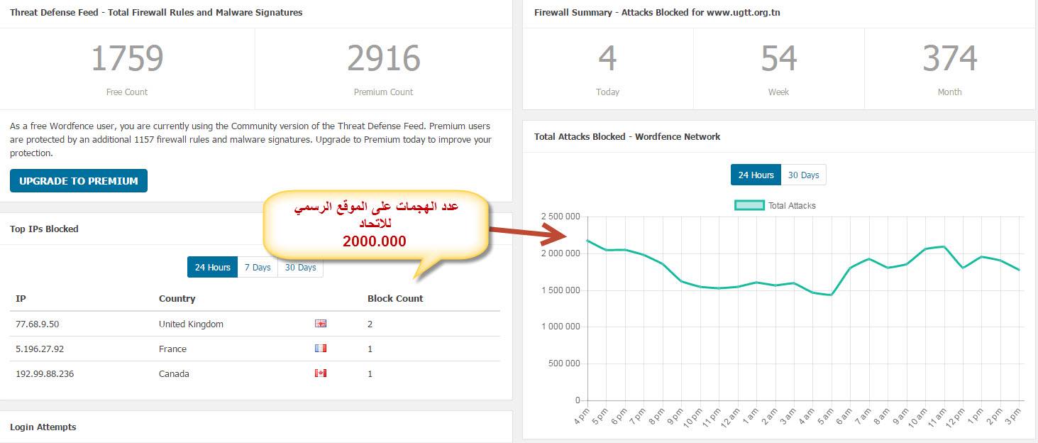 نشر الاتحاد العام التونسي للشغل اليوم السبت 4 مارس 2017 تقريرا مفصّلا لعدد الهجمات التي تعرض له موقعه الرسمي ليلة أمس وطيلة الأسبوع من محاولات قرصنة كللت بالفشل حيث تعرض الموقع لأكثر من 200.000 محاولة اختراق فاشلة.