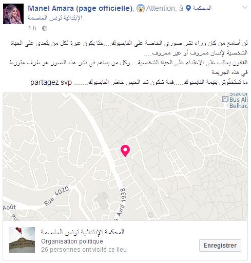 توعدت الفنانة منال عمارة كل من كان وراء نشر صورها الخاصة على الفيس بوك معتبرة أن "القانون يعاقب على الاعتداء على الحياة الشخصية....وكل من يساهم في نشر هذه الصور هو طرف متورط في هذه الجريمة"، وفق تعبيرها.