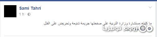 وأضاف الطاهري، في تدوينة على الفايسبوك، أنّ ما دوّنته المستشارة على صفحتها تحريض على القتل.