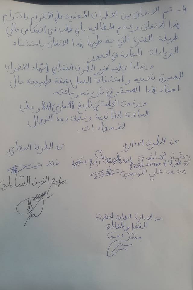 أعلن الاتحاد العام التونسي للشغل أمس السبت، 18 مارس 2017، عن إنهاء الإضراب في شركة استغلال حقول النفط لرخصة الجنوب سودابس بتطاوين.