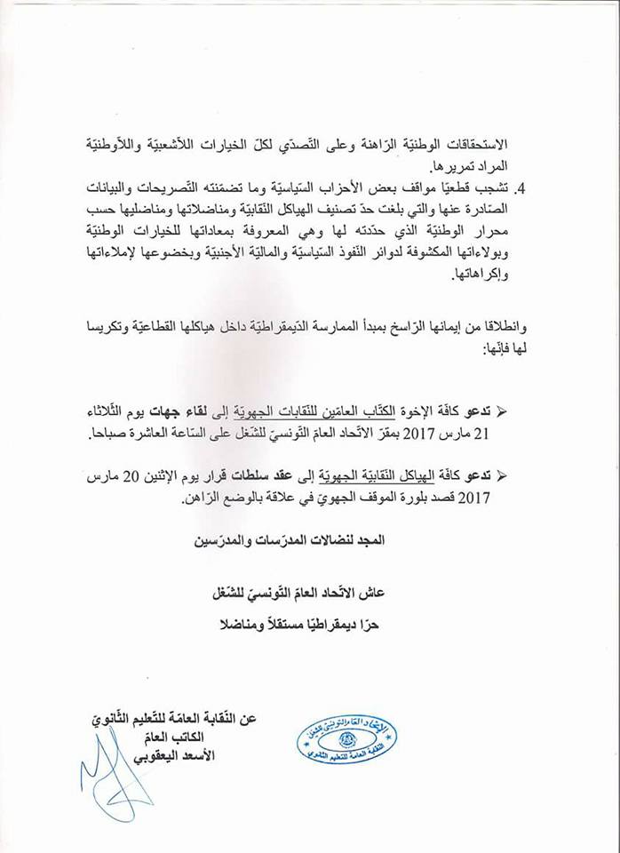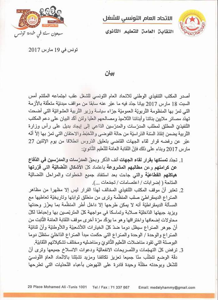 لوّحت النقابتان الأساسيتان للتعليم الأساسي والثانوي بسوسة في بيان مشتر ...