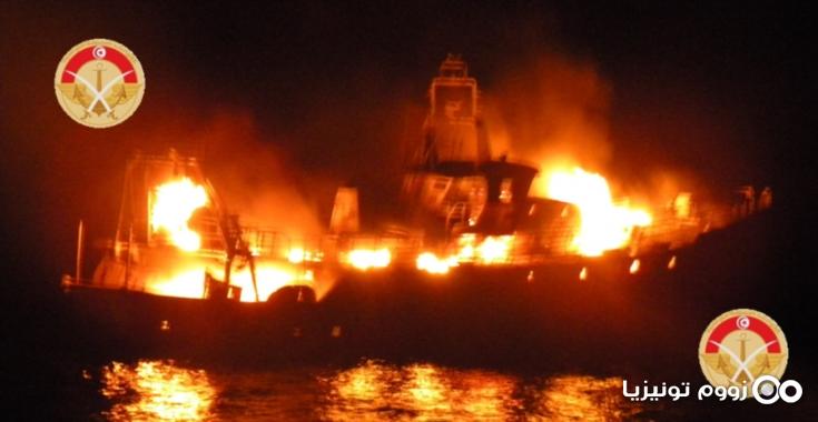 وأضافت الوزارة أنه تم تلقي إنذار إغاثة من مركب صيد تونسي كان متواجدا على بعد 60 كلم من ميناء قليبية تعرض إلى حريق، وقام بالتنسيق مع مركب صيد تونسي ثان كان على مقربة من الموقع لتقديم المساعدة إلى أن وصلت على عين المكان 4 وحدات عسكرية عائمة وقامت بإنقاذ جميع أفراد المركب المنكوب.