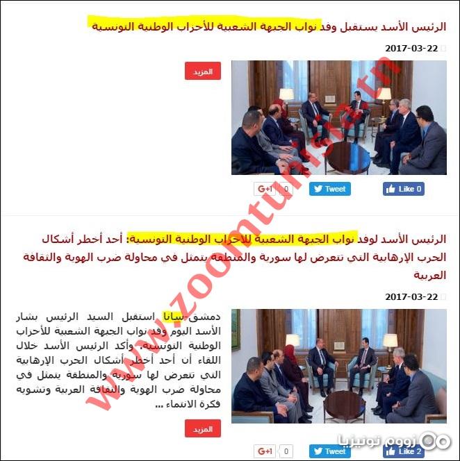هذا وبالرجوع إلى الإعلام السوري الرسمي، فقد تبيّن أنّ الوكالة العربية السورية للأنباء ذكرت الوفد بـ "نواب الجبهة الشعبية للأحزاب الوطنية التونسية" رغم أنّه لا يُمثل جميع الحساسيات والنوّاب كما أنّه لا يُمثّل المجلس وفق تأكيد أعضاء الوفد في تصاريح مختلفة.