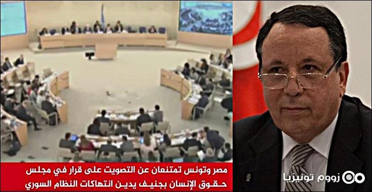وأضاف الجهيناوي أنّ تونس اِمتنعت عن التصويت لأن هذا القرار لا يهم سوريا فقط بل يهم أطراف أخرى أيضاً، مُشدّداً على أنّه لا أحد يُمكنه المزايدة على تونس فيما يتعلق بحقوق الإنسان.