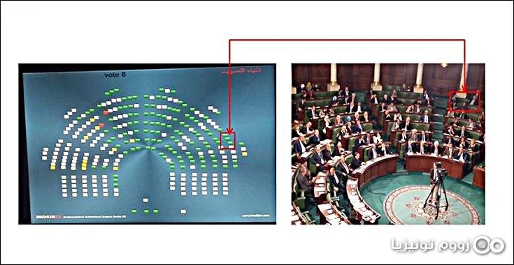 وقد أكّدت البوصلة أنّها قد رصدت 119 صوت "مع"، مع وجود صوت لم يتم التعرّف عليه بإعتبار أنّ المقعد الموافق له كان شاغراً أثناء التصويت، بين النائبين الهادي قديش والطاهر بطيخ، عن كتلة حركة نداء تونس.
