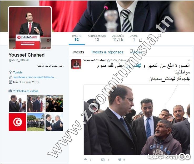 وقد خيّر يوسف الشاهد بدوره حذف هذه الصورة على حسابه الخاص على موقع التواصل "تويتر" والتي نشرها بالتزامن مع نشر رئاسة الحكومة لصور هذه الزيارة وحذفها بعد حذف الصورة المعنية من صفحة الرئاسة على الفايسبوك.