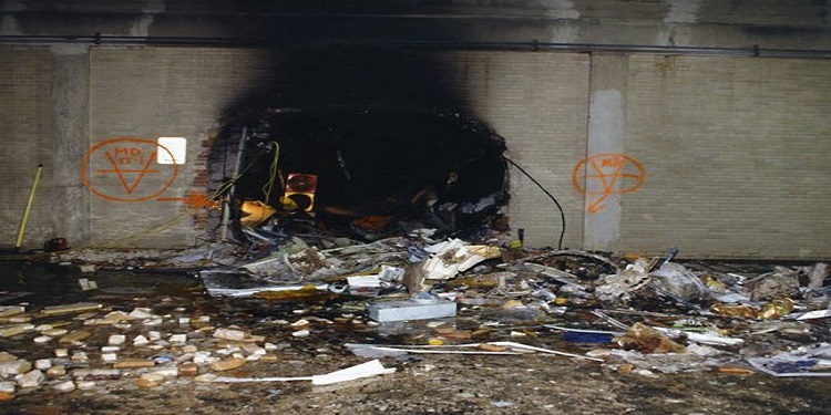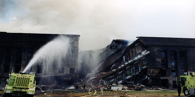 وظهرت بقايا الطائرة التابعة لشركة "أميركان ايرلاينز" في الرحلة رقم 77 التي استخدمت في الهجوم على المبنى.
