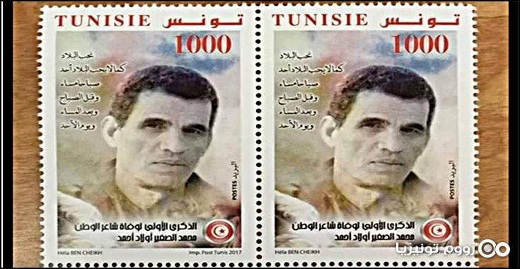 أصدر البريد التونسي اليوم الأربعاء 5 أفريل 2017 طابعا بريديا بمناسبة الذكرى الأولى لوفاة الشاعر محمد الصغير أولاد أحمد.