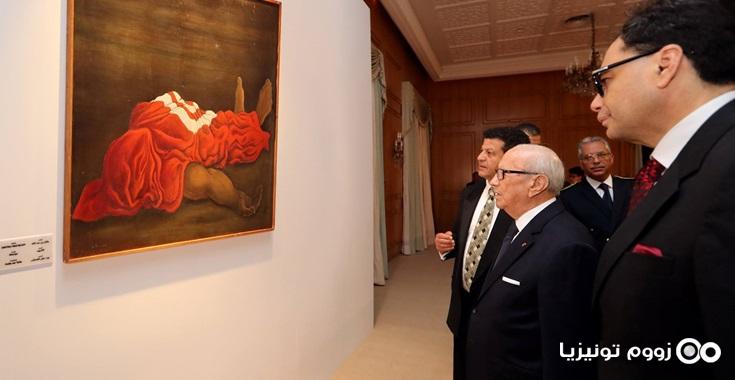 ومن أهمّ الاعمال المعروضة، لوحة الفنان التشكيلي التونسي جلال بن عبد الله بعنوان "الشهيد" والتي رسمها ليلة أحداث 09 أفريل 1938 عندما كان عمره 17 سنة وذلك اثر مشاركته في المظاهرة ومعاينته لأحداث ذلك اليوم التاريخي. وهي لوحة تجسّد الشهيد مسجى بالعلم الوطني.