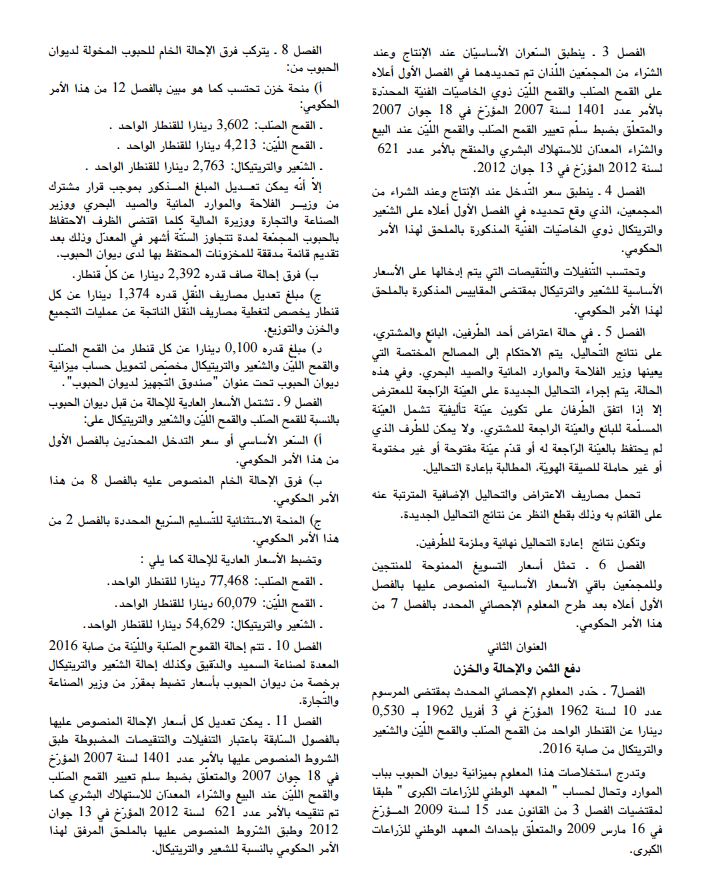 صدرت في الرائد الرسمي : تحديد أسعار الحبوب وكيفية دفع أثمانها وخزنها (التفاصيل)