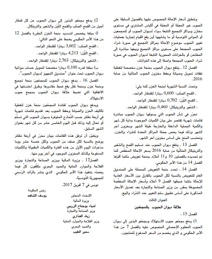 تم رسميا تحديد سعر الحبوب وكيفية دفع أثمانها وخزنها وإحالتها للموسم السياحي 2016-2017.