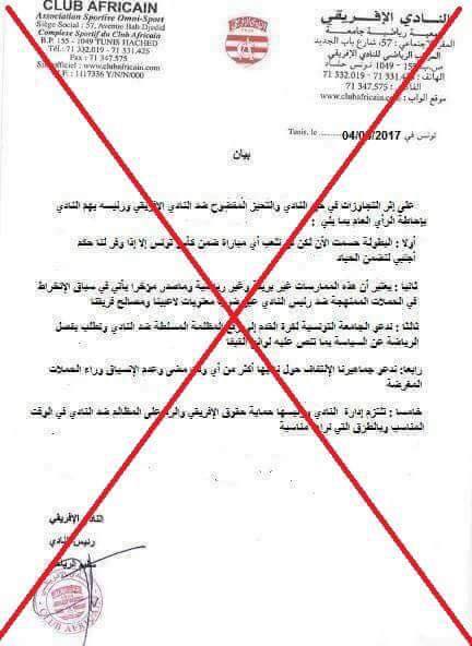 وأكدت إدارة النادي أن هذا البيان المزور ولا أساس له من الصحة و لم يصدر عن أي جهة رسمية.