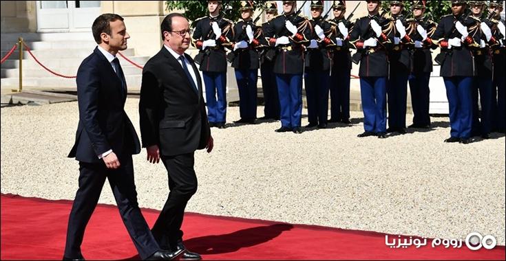 وبمغادرة السيارة التي تقل الرئيس السابق، دخل ماكرون وزوجته بريجيت، القصر الرئاسي، وتوجه إلى باحة القصر، والتي تعد من أجمل القاعات بفرنسا بعد قاعة مجلس الشيوخ، الغرفة العليا للبرلمان الفرنسي.