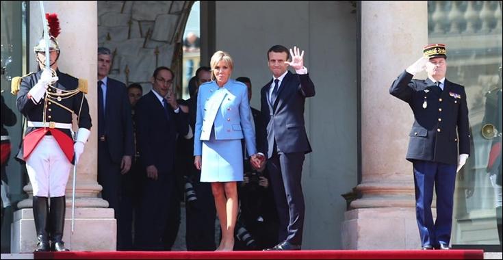 وقد كانت سيدة فرنسا الأولى بريجيت ماكرون قد سبقت زوجها الرئيس الفرنسي إلى الداخل وغابت عن حفل البروتكول، حيث تمّ إستقبال ماكرون فقط من قِبل أولاند وذلك لأنّ البروتكول يفرض ذلك لغياب السيدة الأولى أي زوجة أولاند.