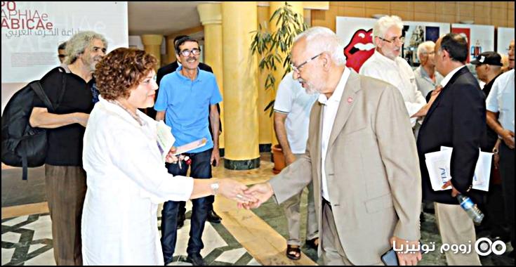 وقد تداول رواد مواقع التواصل الاجتماعي صورة تجمع رئيس حزب حركة النهضة راشد الغنوشي ورئيسة المكتبة الوطنية الاستاذة الجامعية رجاء بن سلامة.