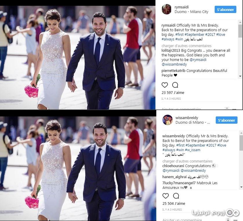 وفي أوّل تعليق لها بعد إعلان زواجها من الإعلامي اللبناني وسام بريدي، نشر العروسين عبر حسابيهما على إنستغرام صورة جمعتهما كُتِبَ عليها أنّ الحب دائماً يفوز .