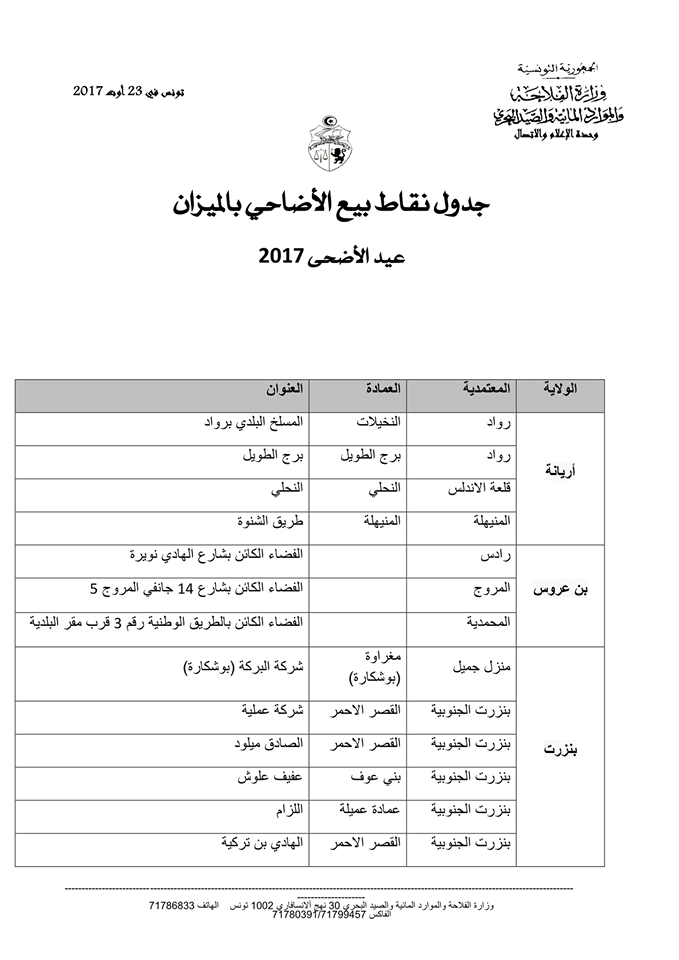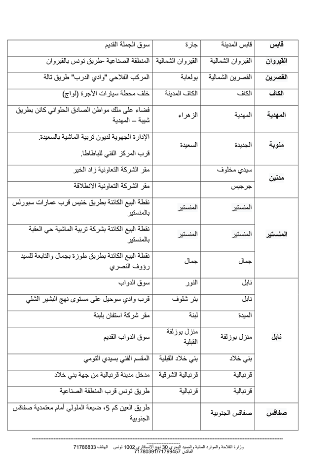 و في ما يلي قائمة نقاط بيع الأضاحي :