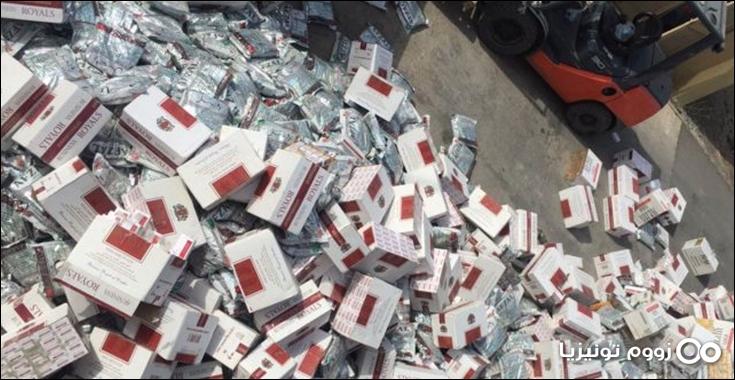 وبتفتيشها تبيّن أنها محمّلة ببضاعة مهرّبة مخفيّة بإحكام تحت كمية من الملابس القديمة "فريب" للتمويه والإفلات من المراقبة الأمنيّة تتمثل في 25 ألف علبة سجائر.