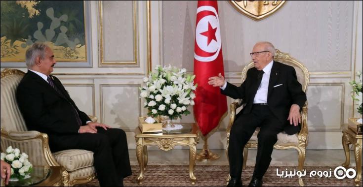 من جانبه، ثمَّن المُشير خليفة حفتر دور تونس ووقوفها المستمر مع الشعب الليبي ومساندتها له في هذه الظروف الدقيقة ولاسيما في مقاومة الإرهاب معربا عن تقديره لرئيس الجمهورية على جهوده وحرصه المتواصل على الدفع باتجاه إيجاد تسوية للأزمة في ليبيا. وأطلع المُشير خليفة حفتر بالمناسبة، رئيس الدولة على آخر تطورات الوضع في المنطقة وعلى نتائج المشاورات التي أجراها لبحث السبل الكفيلة بتحقيق الأمن والاستقرار في ليبيا.