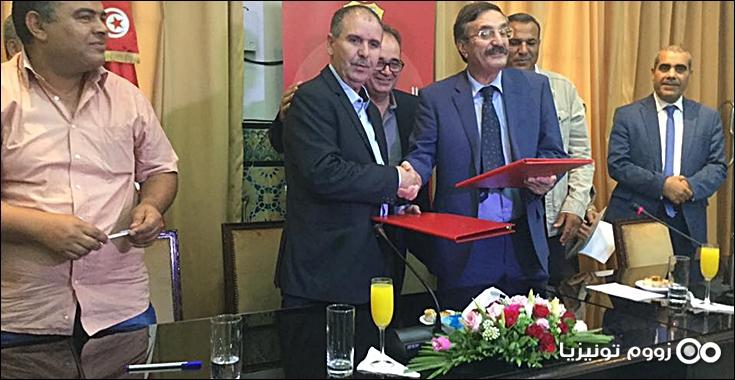 أشرف الأمين العام لإتحاد الشغل نورالدين الطبوبي اليوم الخميس 04 سبتمبر 2019، على توقيع اتفاق ...