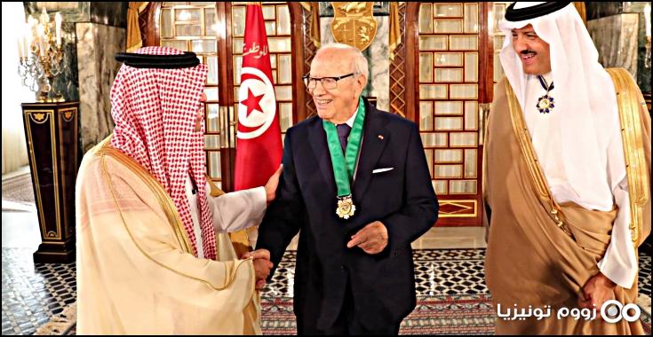 من جانبه، عبّر رئيس الجمهورية عن اعتزازه بهذا التكريم وأكّد حرص تونس على تطوير تعاونها مع كافة الدول العربية سواء على المستوى الثنائي أو في إطار العمل العربي المشترك وجدّد التزام تونس وسعيها إلى أن تكون لها علاقات طيبة مع الجميع واستعدادها لمزيد التعاون خدمة لمصالح شعوب المنطقة وتعزيز للأمن والاستقرار في ربوعها.