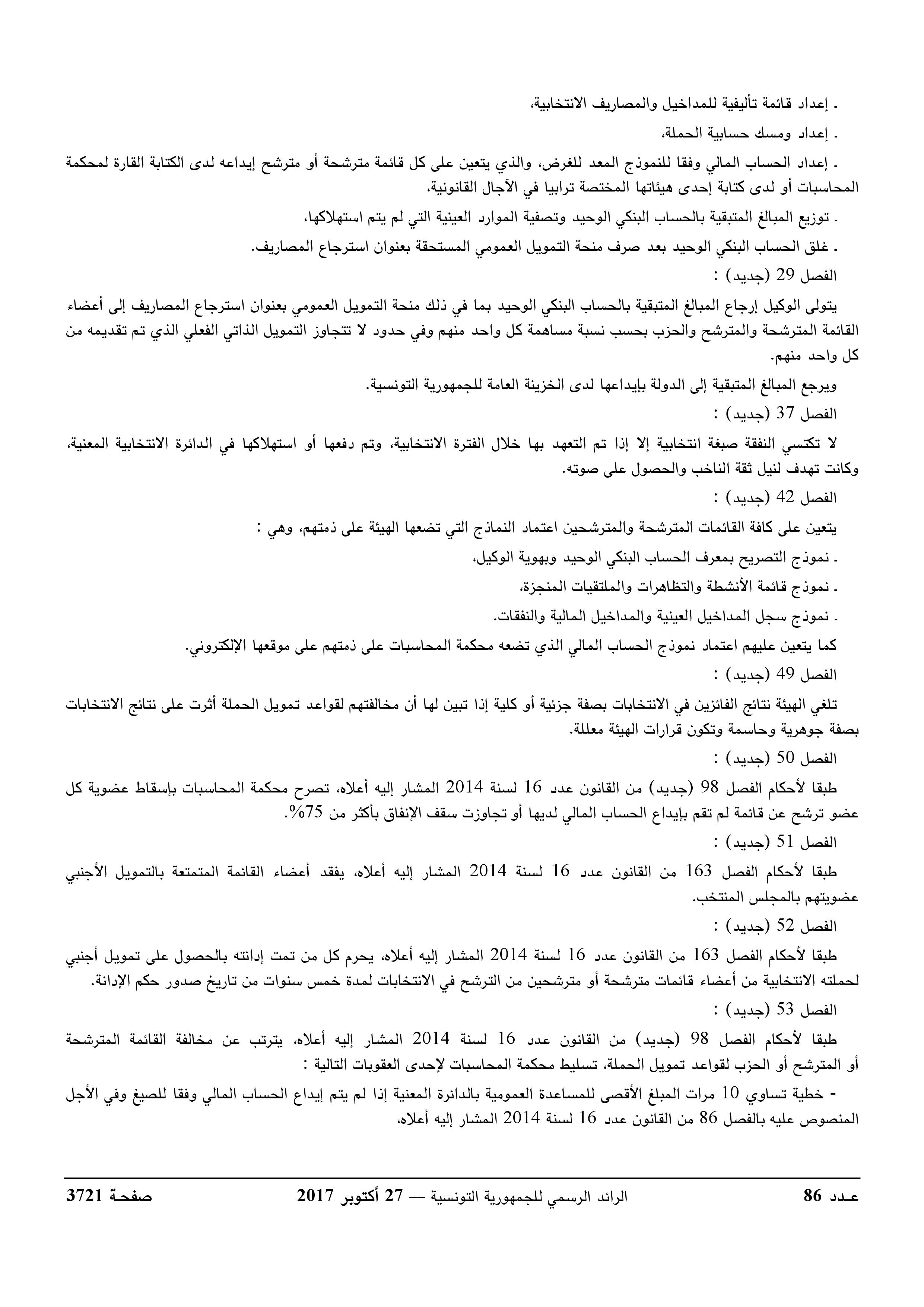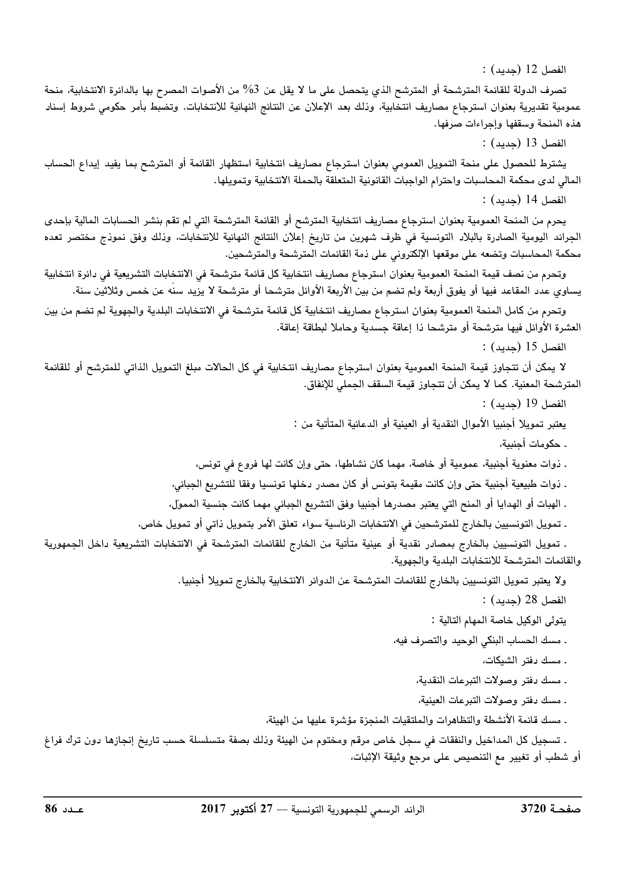 صدرت بصفة رسمية في الرائد الرسمي : قواعد تمويل الحملة الانتخابية واجراءاته وطرقه بالتفصيل