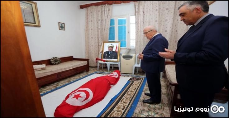 واستمع رئيس الدولة، الذي كان مصحوبا بوزير الداخلية لطفي براهم، إلى مشاغل العائلة وزملاء الشهيد وممثلين عن النقابات الأمنيّة.