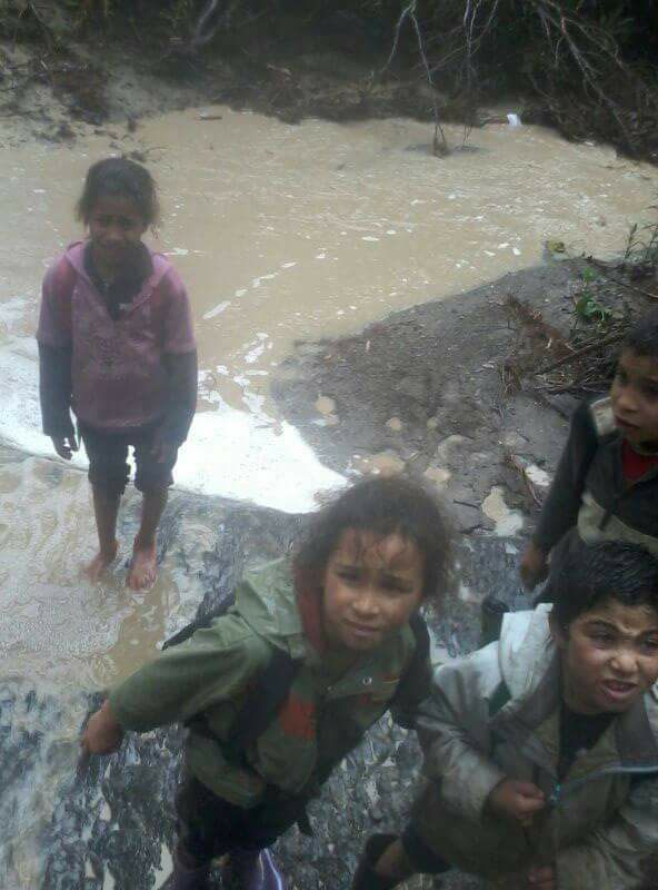 تلاميذ لا تتجاوز أعمارهم 12 سنة ينهضون منذ 5 صباحا ثم يتوجهون الى مدرستهم ليجاهدون في سبيل العلم ففي طريقهم الى مدرستهم يضطرون الى قطع وادي وهو عبارة عن مسلك فلاحي لكن وبعد تدخل وزارة التجهيز العام الفارط لتعبيد الطريق رفض المقاول العمل لتبوء هذه الصفقة بالفشل وتبقى المعاناة تلاحق التلاميذ وسكان هذه المنطقة، مع العلم ان هناك أكثر من 35 عائلة تعاني بسبب هذا الطريق.