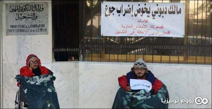 زووم - يخوض الشاب مالك الدبوني أصيل ولاية مدنين المُتحصّل على ماجستير علوم الإعلامية والبالغ من العمر 25 سنة منذ يوم الأربعاء 15 نوفمبر 2017 إضراب جوع أمام وزارة التشغيل و التكوين المهني.