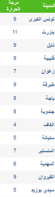 أعلن المعهد الوطني للرصد الجوي عن درجات الحرارة المسجلة على الساعة 7 صباحا من صباح اليوم الإثنين 4 ديسمبر 2017.