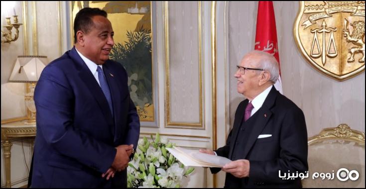 وأطلع إبراهيم أحمد غندور رئيس الدولة على مستجدات الأوضاع في السودان خصوصا بعد رفع العقوبات عنه. كما أعرب عن ارتياحه للعلاقات التاريخية الوثيقة التي تجمع البلدين وما تشهده مسيرة التعاون من تطوّر مستمر لا سيما بعد زيارة رئيس الحكومة إلى الخرطوم في مارس 2017 بمناسبة اجتماع اللجنة العليا المشتركة، معتبرا أنّ انعقاد لجنة التشاور السياسي بين الجانبين خطوة مهمة لتكريس سنة التشاور والتفاهم ومناسبة لتقييم ومتابعة مختلف ملفات التعاون الثنائي. وأكّد وزير الخارجية السوداني حرص بلاده على تطوير التعاون مع تونس لا سيما في المجالات الاقتصادية من خلال الرفع من نسق المبادلات التجارية وتيسير إجراءات الحصول على التأشيرة خاصة بالنسبة لرجال الأعمال، مبديا رغبة السودان في الاستفادة من الخبرة التونسية في عدد من القطاعات ذات الأولية.