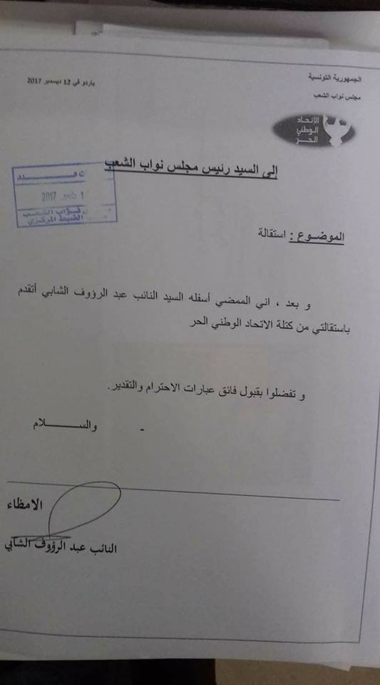 النائب عبد الرؤوف الشابي يستقيل من كتلة الوطني الحر