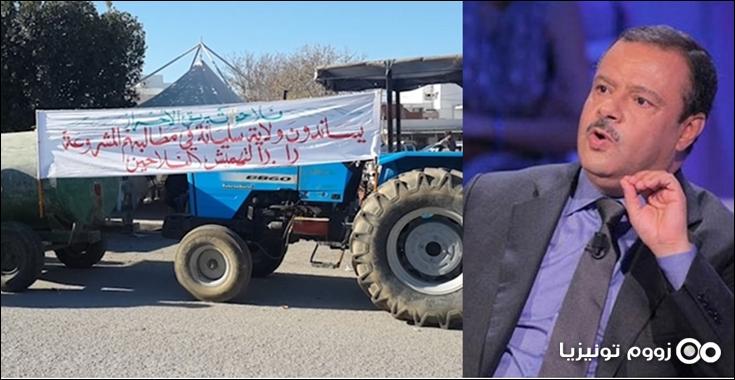 ووفق ما أكّد بلال الحرباوي الناطق الرسمي بإسم الإعتصام في تصريح لـ "زووم تونيزيا" ، فإنّ الفلاحون يحتجون على تصريحات وزير الفلاحة سمير بالطيب، التي قالها خلال اجتماعه بوفد عن اتحاد الشغل وعدد من الوزراء، والتي اِعتبر فيها أنّ اعتصامهم يأتي بسبب مشاكل انتخابية مع رئيس اتحاد الفلاحة والصيد البحري عبد المجيد الزّار وليس لمطالب تهمّ القطاع، وهو أمر لا أساس له من الصّحة.