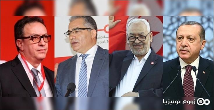 ثم يستقبل الرئيس أردوغان في مقر إقامته بضاحية قمرت رؤساء ثلاثة أحزاب من حيث حجم تمثيلهم في البرلمان، إذ يلتقي على التوالي راشد الغنوشي رئيس حركة النهضة (68 نائبا من اجمالي217)، وحافظ قايد السبسي المدير التنفيذي لحركة نداء تونس (56 نائبا)، ومحسن مرزوق، أمين عام حزب مشروع تونس (21 نائبا).