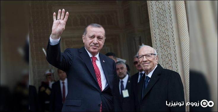 وقد شدّ الانتباه علامة "رابعة" التي رفعها الرئيس التركي حال نزوله من الطائرة التي وصلت مطار قرطاج الدولي في وقت متأخر من الليل، والتي رفعها أيضاً مع رئيس الجمهورية الباجي قائد السبسي.