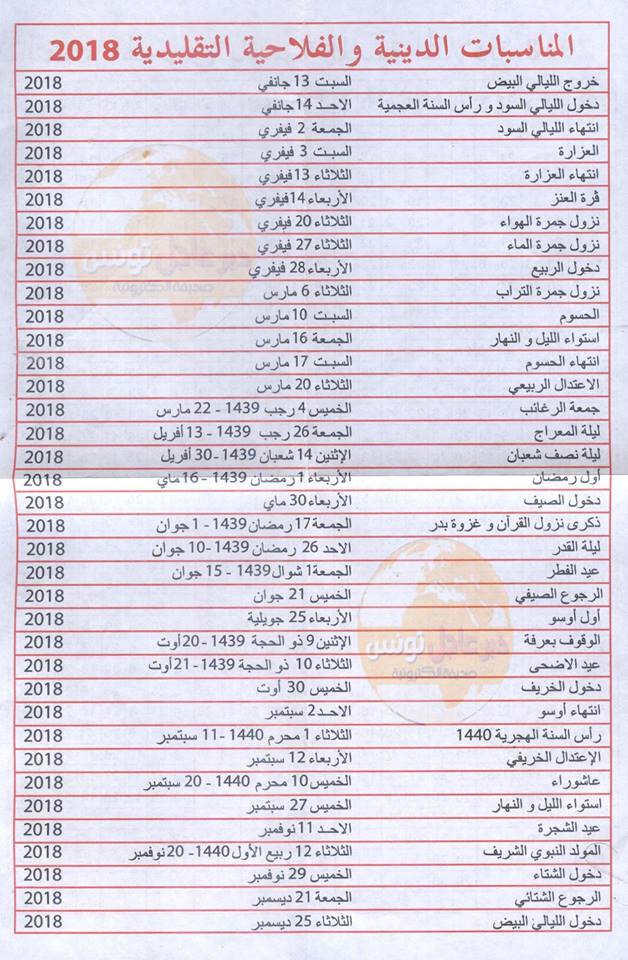 وفي ما يلي تفاصيل العطل الرسمية لسنة 2018: