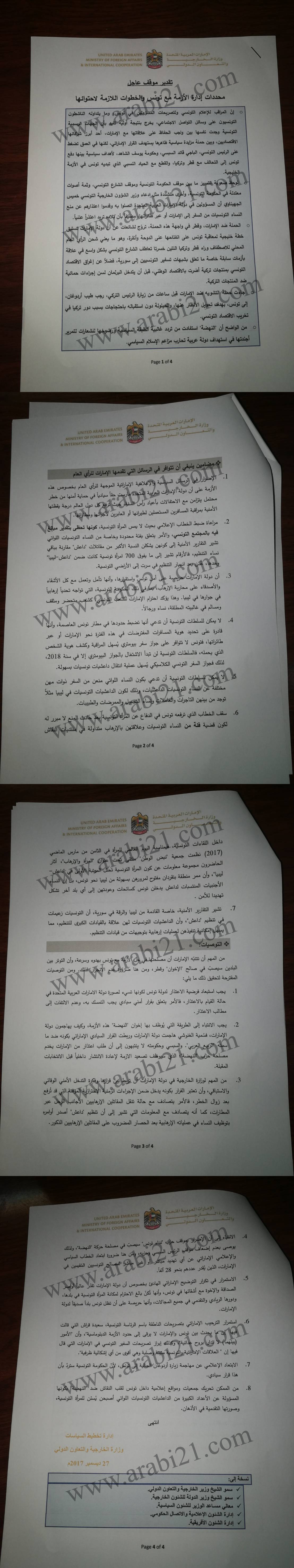 وأضافت الوثيقة أن "السبسي وحكومته لا ينتبهون إلى أن طلب اعتذار من دولة الإمارات يخدم مصلحة حركة النهضة، التي ستوظف تصعيد الأزمة لإعادة الانتشار داخليا قبل الانتخابات المقبلة"، في تدخل واضح في الشؤون الداخلية لتونس، وتحريض حزب نداء تونس ضد حركة النهضة والإيحاء للسبسي بأن تصعيد الأزمة سوف يخدم منافسيه في الانتخابات القادمة.
