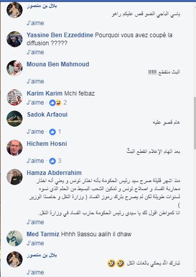 وكان البث على صفحة رئاسة الجمهورية غير أنّه اِنقطع منذ قليل لأسباب غير معروفة بادئ الأمر، لتأتي تعاليق ساخرة على هذا الانقطاع، حيث قال روّاد مواقع التواصل أنّ البث انقطع حال اتهام الإعلام.