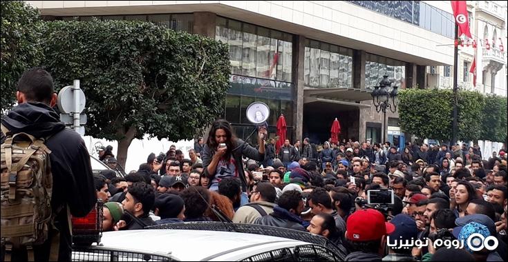 وقبل توجههم لوزارة الداخلية، كانت لهم وقفة أمام المسرح البلدي قالوا فيها أنّه ليس هنالك أي مبرّر لقتل مواطن قام بالسرقة، وذلك في إشارة إلى الشاب الذي تُوفي أمس في طبربة والذي أكّدت الداخلية أنّه توفي بسبب (ضيق النفس).