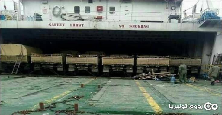 يذكر أن الديوانة التونسية كانت قد أصدرت بلاغا أوضحت فيه أنه وعلى اثر اقتراب باخرة تحمل الراية البنمية لمنطقة الانتظار المقابلة لميناء صفاقس، تولت مصالح الحرس الديواني البحري القيام بإجراءات التفتيش والمراقبة وتبين احتواؤها لتجهيزات عسكرية من شاحنات وسيارات مصفحة وناقلات جنود مدرعة مع تجهيزات معسكر، غير مسجلة كلها بوثيقة الشحن المرافقة للباخرة مع وجود 24 حاوية غير مصرح بمحتواها وللاشتباه في امكانية احتواؤها على أسلحة أو ذخائر.