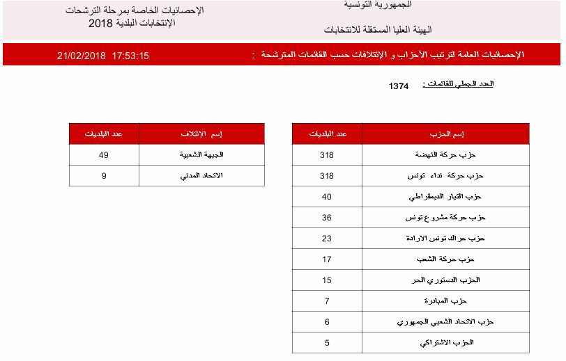 حيث بلغ العدد الجملي لمطالب الترشح 1430 مطلبا، توزعت حزب الأحزاب كما يلي :