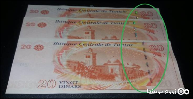 وأكّد البنك أنّ هذه الأوراق موضع التداول سليمة كليا، مبيّنا وجود التباعد الطفيف في خيط الأمان ذي الشبابيك، بتقنية عادية تميز طباعة الورقات النقدية في السنوات الأخيرة.