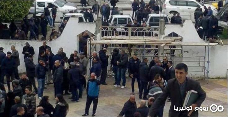 وكانت نقابة موظفي الإدارة العامة للأمن العمومي، دعت مساء الأحد جميع الأمنيين إلى "الإستنفار والحضور" صباح أمس الإثنين بكثافة أمام المحكمة الابتدائية ببن عروس وذلك على خلفية إيقاف ثلاثة أمنيين وإحالة اثنين آخرين بحالة تقديم من أجل " شبهة التعنيف" إثر القبض على عنصر إرهابي متورط في تكوين عصابة بالإضافة لتورطه في جريمتي اغتيال الشهيدين شكري بلعيد ومحمد البراهمي، حسب ما ذكرته النقابة في بيان نشرته على صفحتها الرسمية على موقع التواصل الإجتماعي فيسبوك.